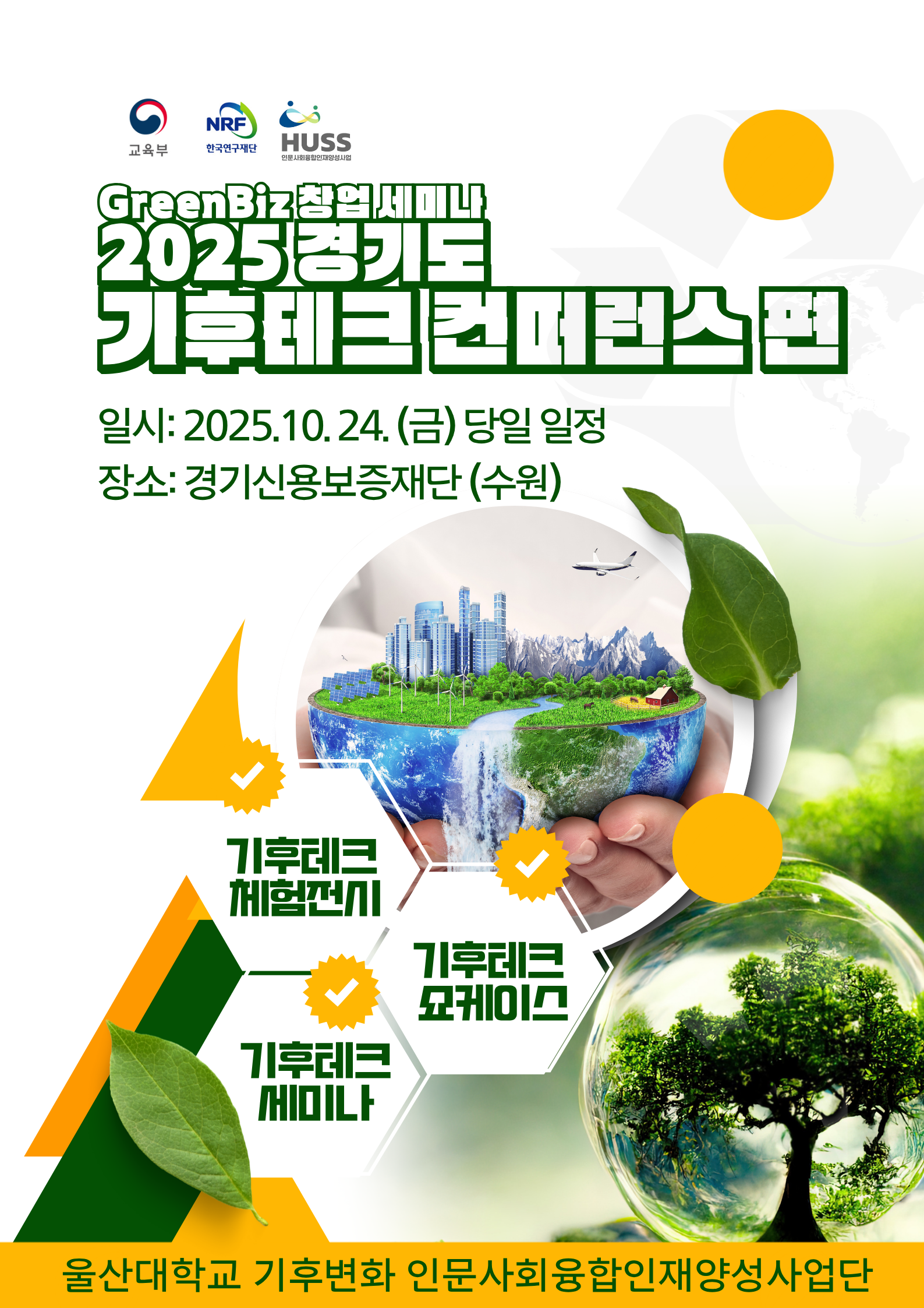 [모집] GreenBiz 창업 세미나 (2025 경기도 기후테크 컨퍼런스 편) 참가자 모집 (2025.10.10.까지) | |||||